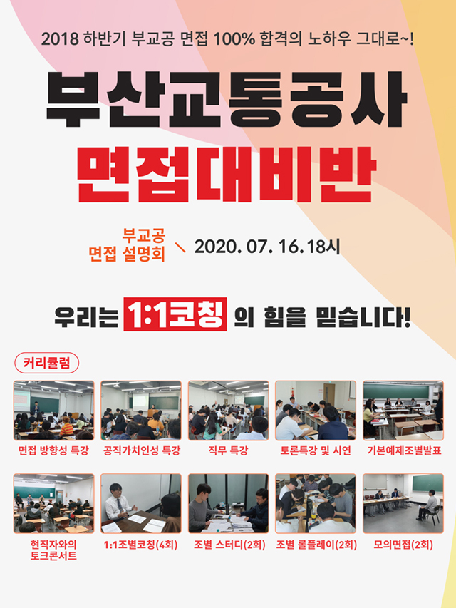 부산교통공사 면접캠프 개강일 : 2020-06-11 No.49| 조회 : 2,246접수완료