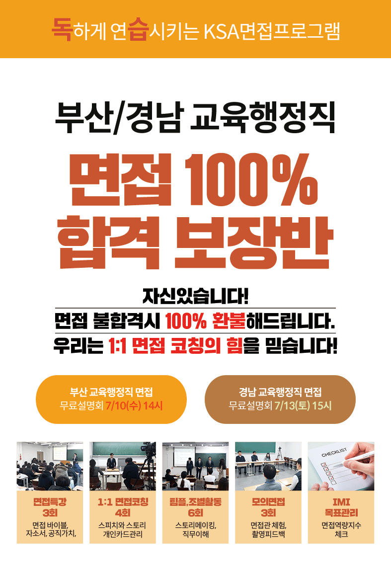 부산/경남 교육행정 면접 합격보장반(자소서 첨삭 포함) 개강일 : 2019-06-17 No.17| 조회 : 785접수완료
