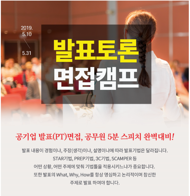 발표토론면접캠프 개강일 : 2019-05-10 No.10| 조회 : 173접수완료