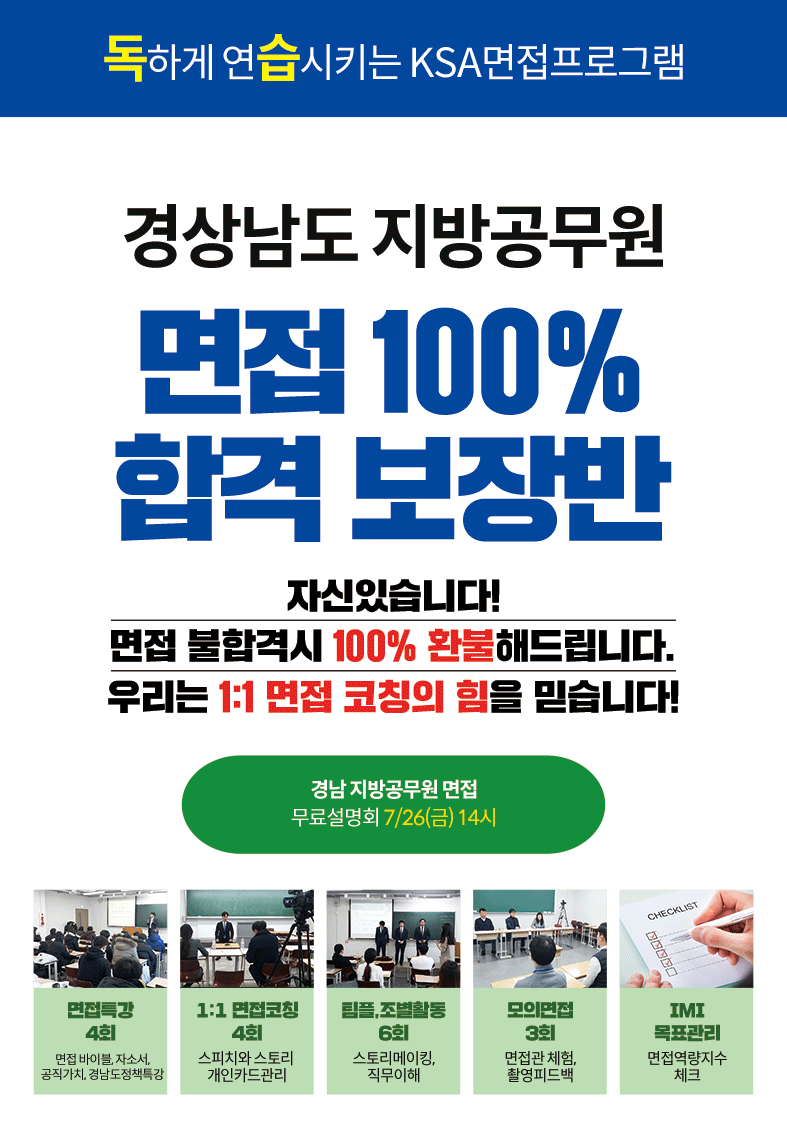 경남 지방공무원면접 합격보장반 개강일 : 2019-06-17 No.16| 조회 : 568접수완료