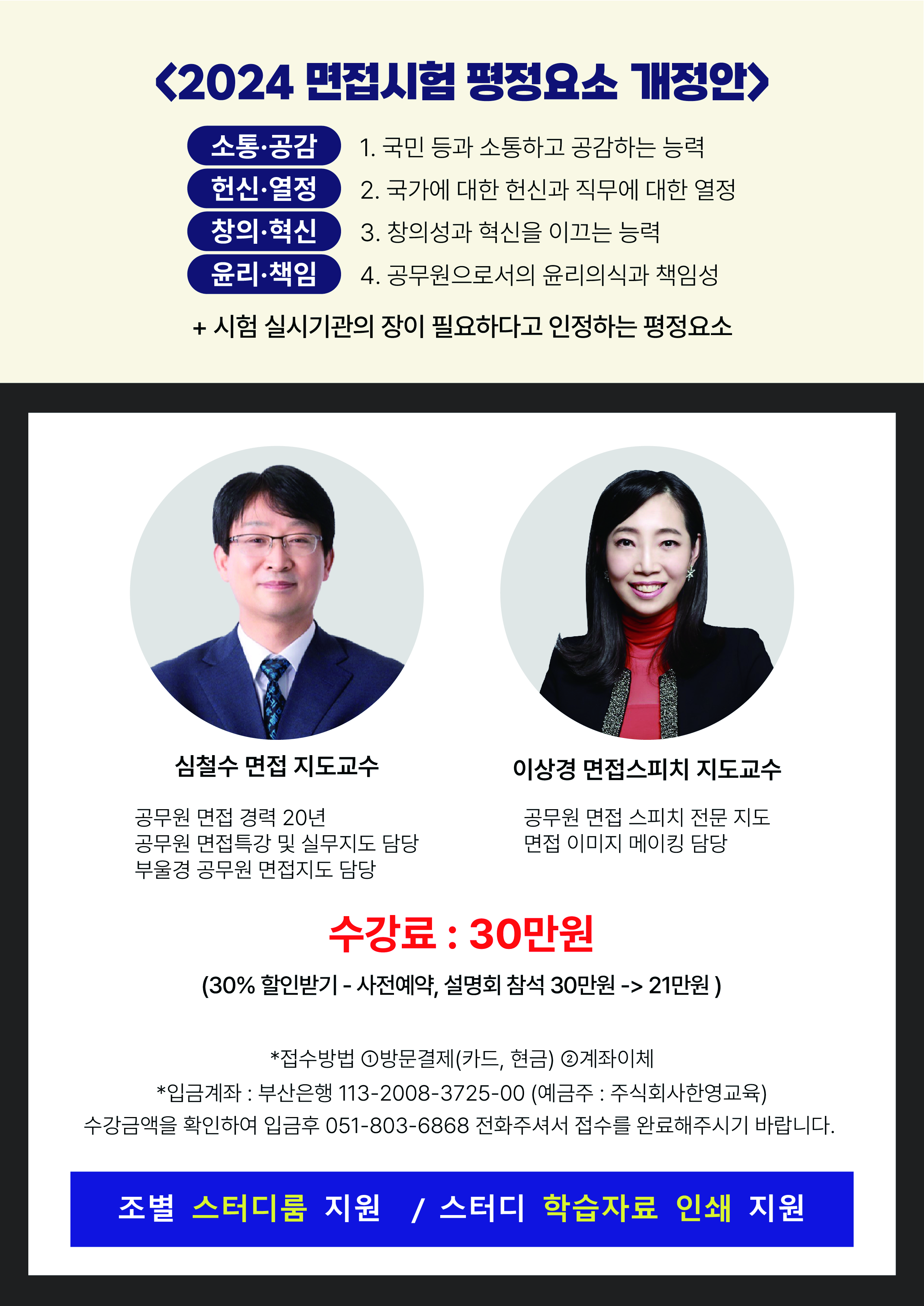 접수완료 소수정예! 2024년 부산 경남 지방직 면접캠프