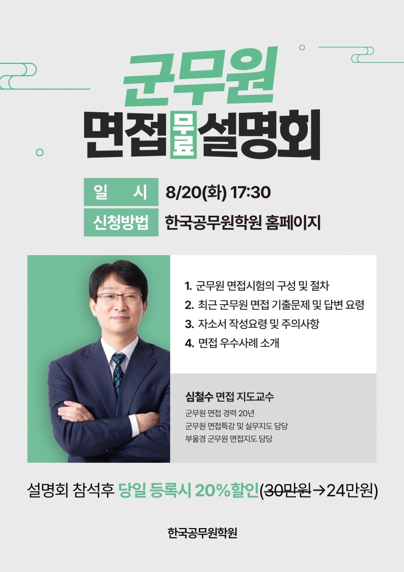 접수완료 2024년 육군 / 국방부 / 해군 / 공군 군무원 면접 무료설명회!