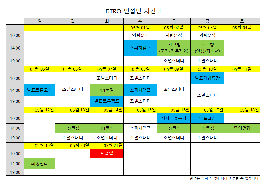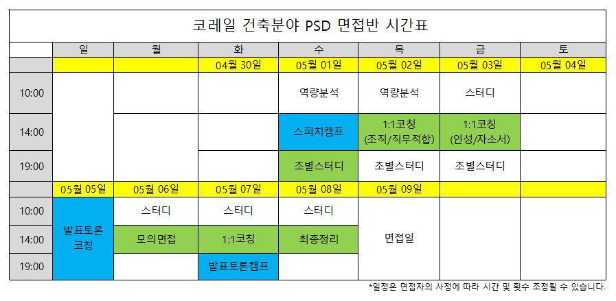 DTRO 1:1면접코칭은 시간표와 상관없이 본인 스케줄에 맞게 진행 가능합니다. =>코레일 건축분야(PSD) 면접반 진행중!