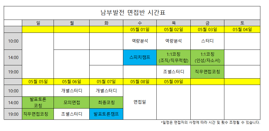 =>남부발전 면접반 진행중! *남부발전 1:1면접코칭은 시간표와 상관없이 본인 스케줄에 맞게 진행 가능합니다. |