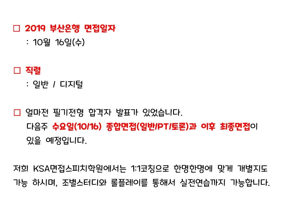 접수완료 2019 부산은행 면접반 개강안내 (~10/15)