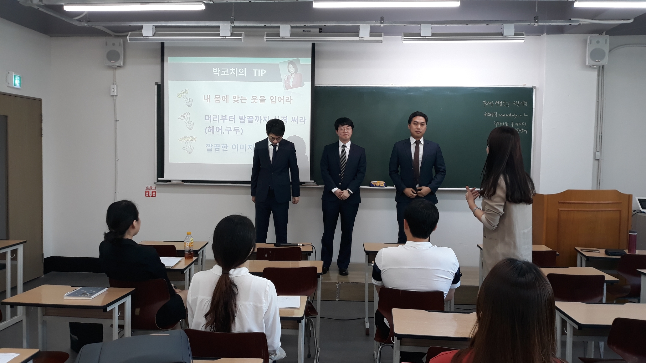 -3회차: 호감형 인재가 되기위한 이미지컨설팅 발표의 논리성을 갖추기 위한 기법과 틀 제시, 적용 훈련 -4회차: 토론면접 대비 토론예의, 기법, 경청과 질문, 주장 설정 안내 조별 토론 실습 및 피드백