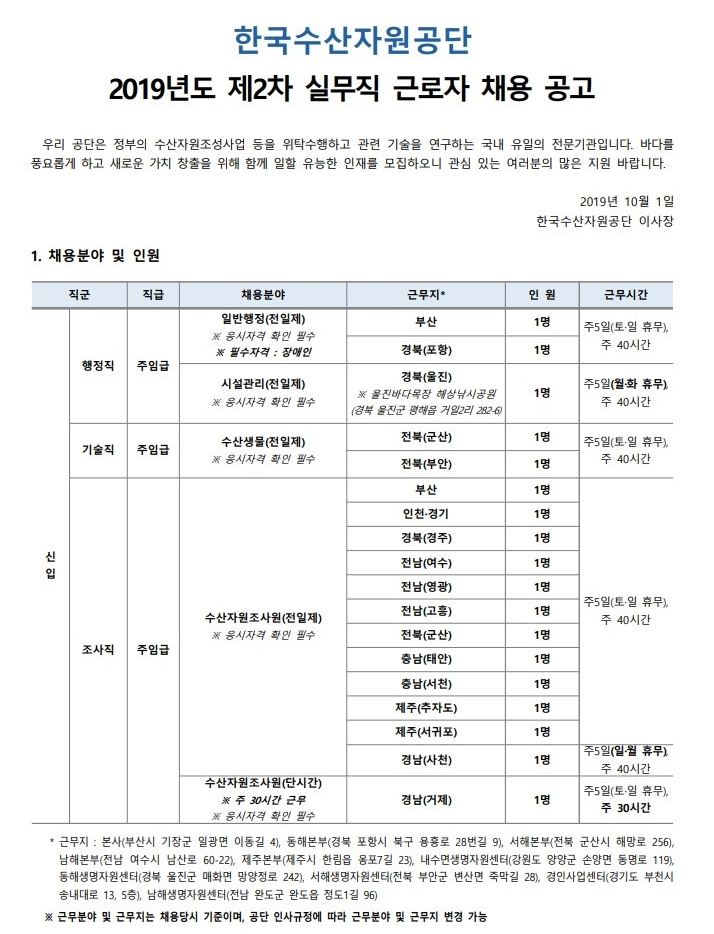 접수완료 한국수산자원공단 실무직근로자 채용 면접대비반