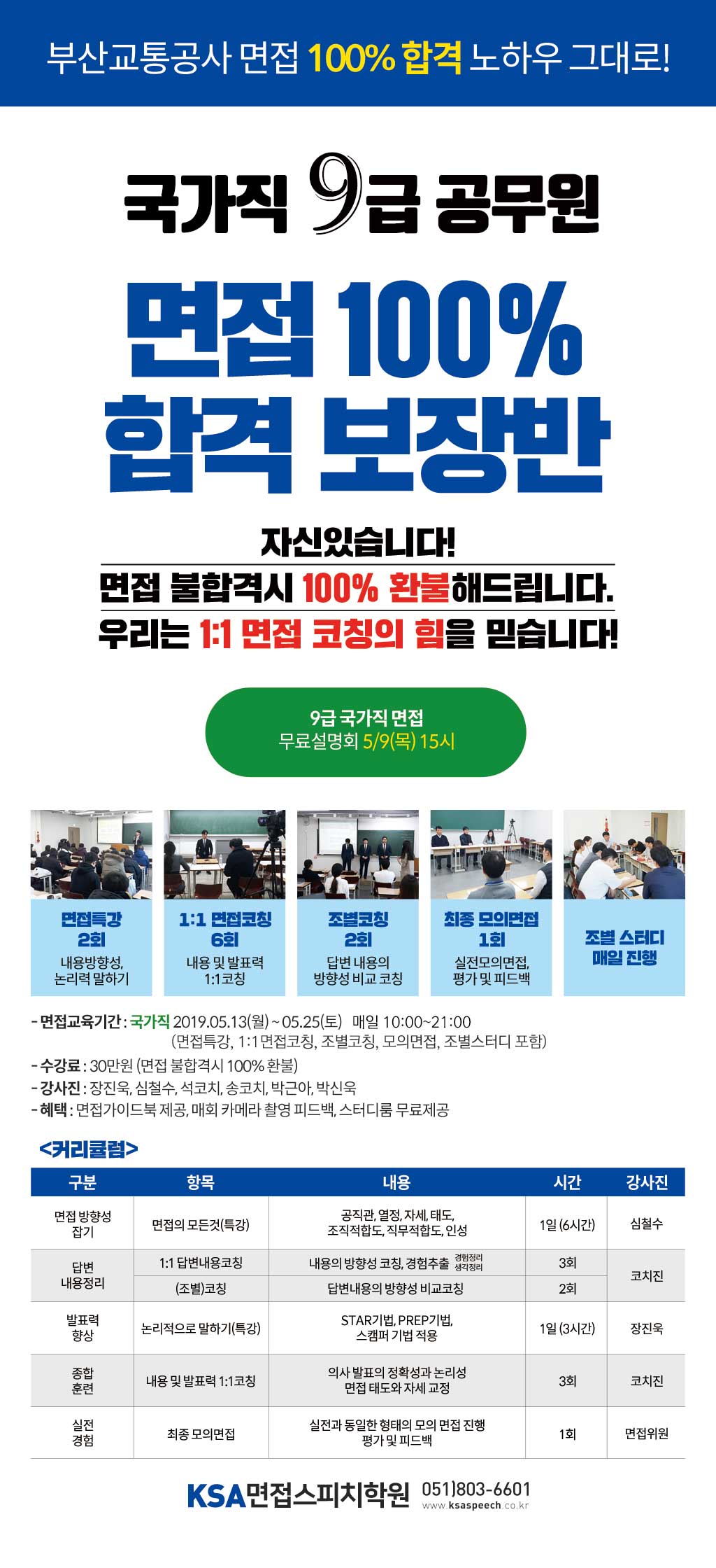 국가직 면접 5분발표 및 개별면접 완벽대비! 면접 100% 합격 보장반 으로 여러분의 최종합격을 책임집니다. 면접 불합격시 100% 환불해 드립니다.