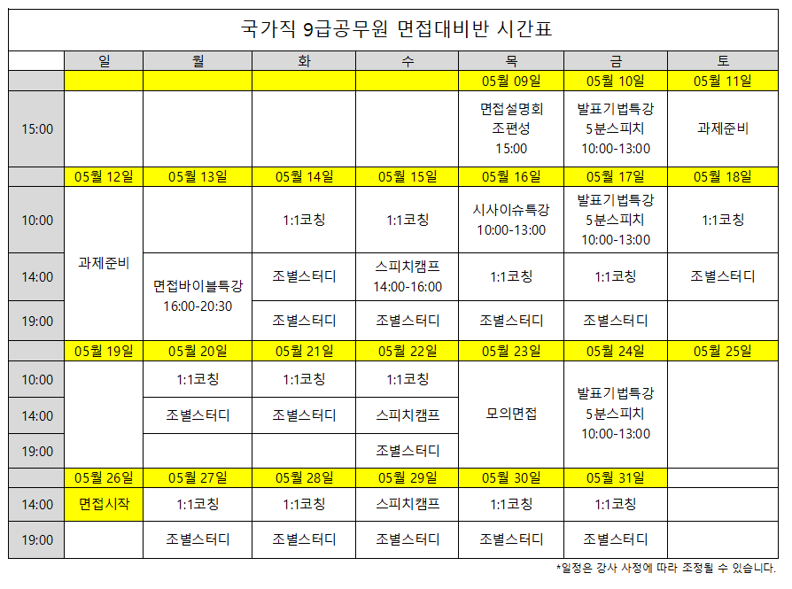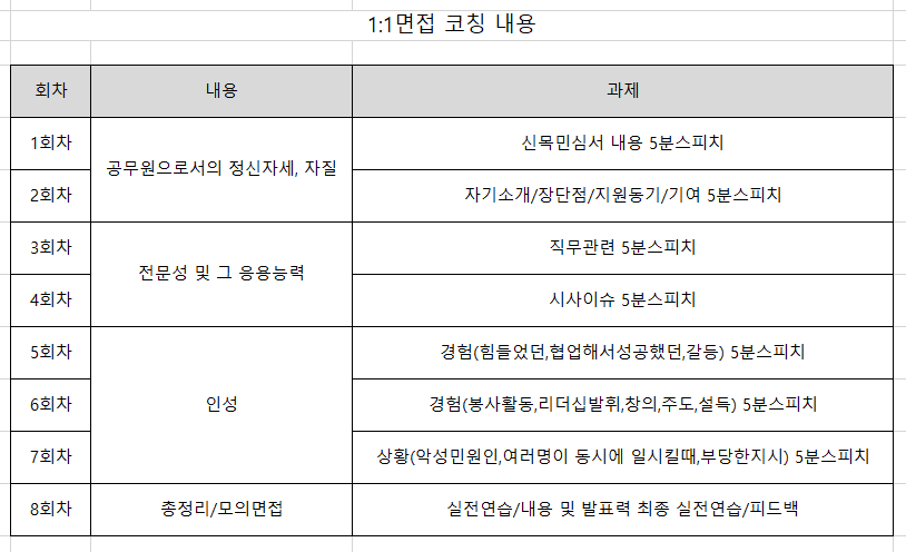 국가직 면접반 수강생은 KSA면접스피치의 정규 면접 프로그램인인 발표토론면접캠프와 스피치캠프에 추가 부담없이 모두 참여하실 수 있습니다. |