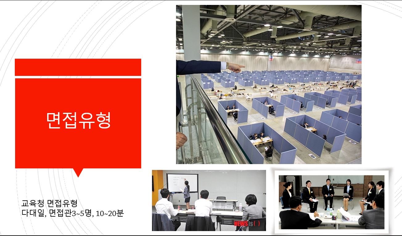 이번 교육청의 면접유형으로는 면접관이 3~5명으로써 다대일 면접에 해당됩니다. 시간도 국가직에 비해서는 10~20분으로 조금 짧으니 짧은시간에 모든걸 보여주어야겠죠?