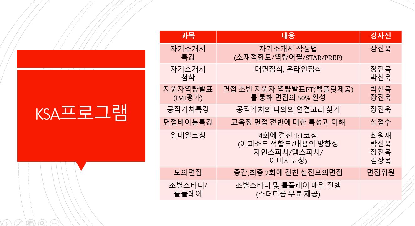 자 이제 저희 KSA면접스피치 만의 1:1 코칭장면입니다. 다양한 분야 코치진께서 수강생 한분한분 개인에 맞게 자세~~하게 코칭이 들어갑니다.
