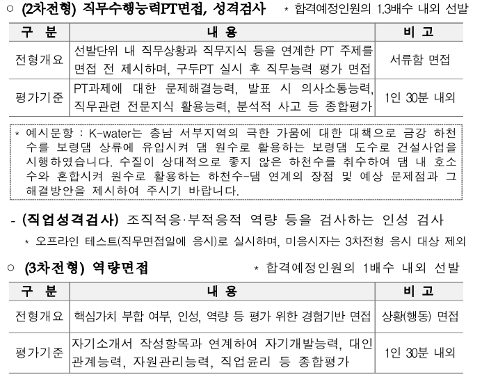 수자원공사는 20일(수) 필합 발표 후 다음주 25일(월)부터 1차 면접이 들어갑니다. 25일에 면접이 잡히신 분들은 면접 준비에 4일의 시간만 남았습니다.